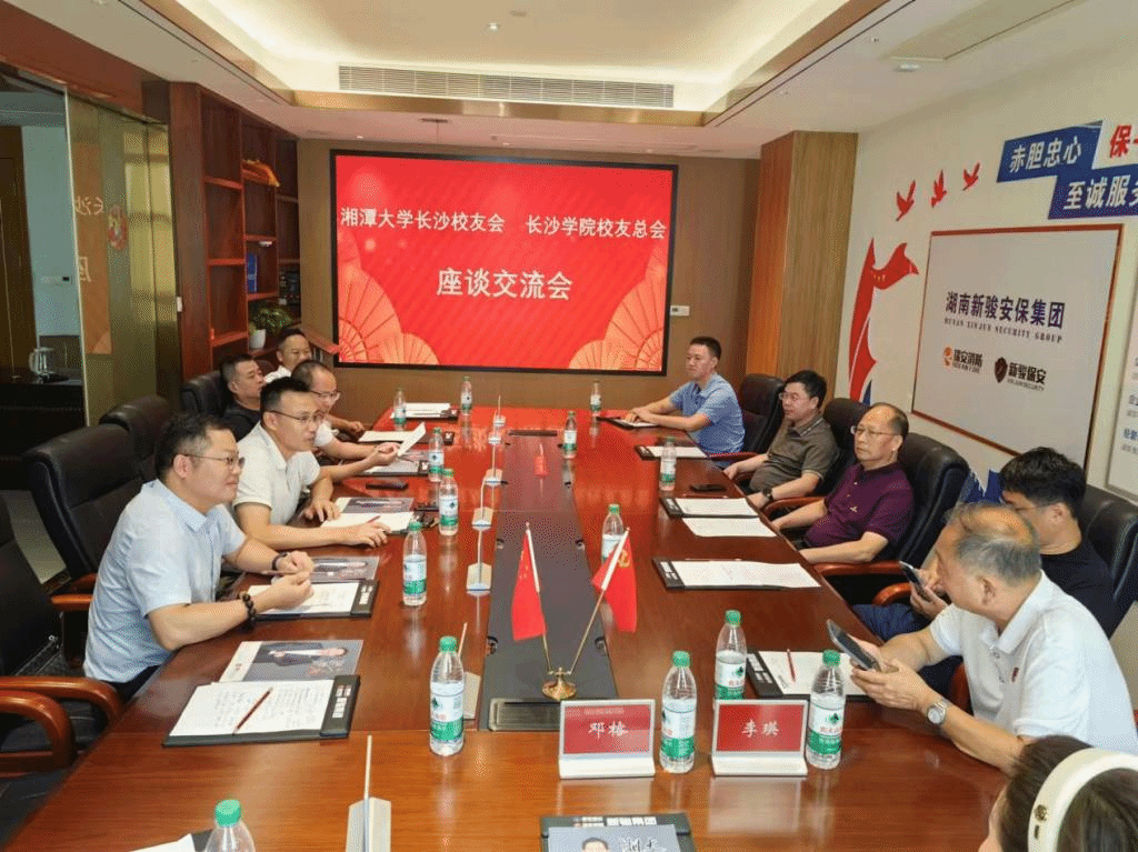 为积极响应湖南省委省政府“校友回湘”决策部署,搭建校友沟通发展桥梁,探索长沙学院校友会的长效发展机制,8月26日,长沙学院校友总会和湘潭大学长沙校友会在湘潭校友会副会长王俊杰的湖南新俊保安服务有限公司开展校友会工作座谈会。座谈会由湘潭大学长沙校友会江帅华副秘书长主持。