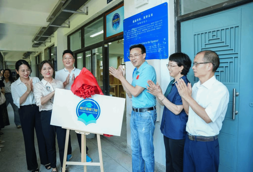 (校友甘利明、招生与就业指导处处长黎文普为格兰登研习室揭牌)