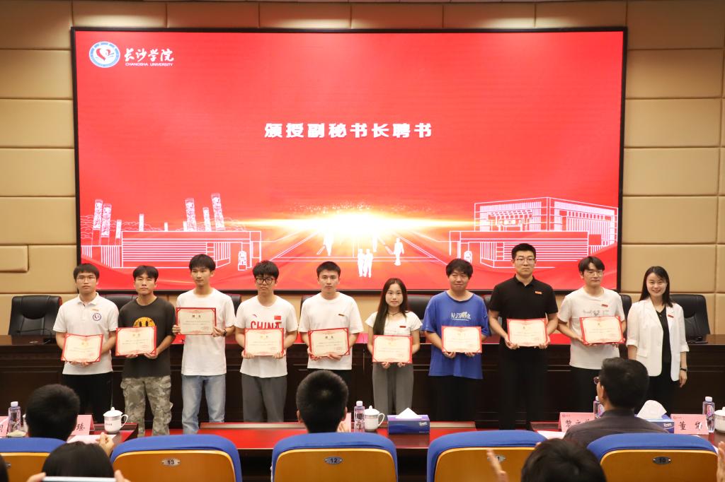 6月6日下午,我校2024届年级校友会成立大会暨“校友回湘”优秀校友讲座在致远楼学术报告厅举行。党委副书记刘寒波出席大会,并为2024届年级校友会授牌,为校友会理事会成员颁发聘书。宣传部、学工处、教务处、团委主要负责人,各二级学院党总支书记、副书记、校友工作联络员,招生与就业指导处(校友会)全体成员、优秀校友代表、2024届毕业生代表参加大会。