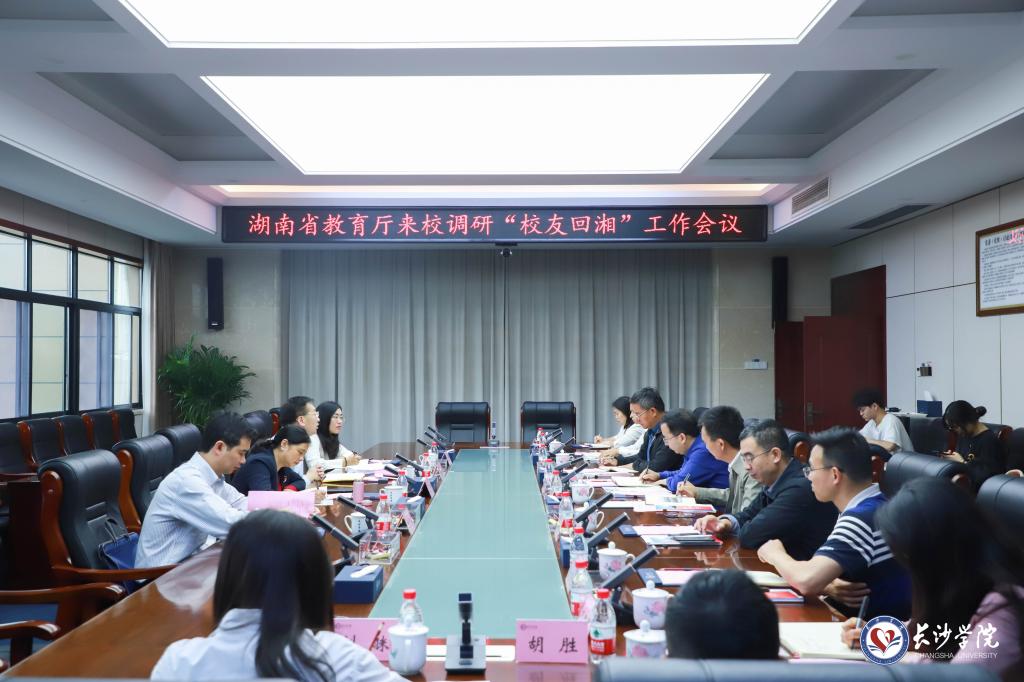 省教育厅“校友回湘”专班副主任、省委教育工委宣传部副部长曾思亮,省教育厅“校友回湘”专班成员袁帅,长沙学院校友代表,招生与就业指导处(校友会)负责人参加会议。