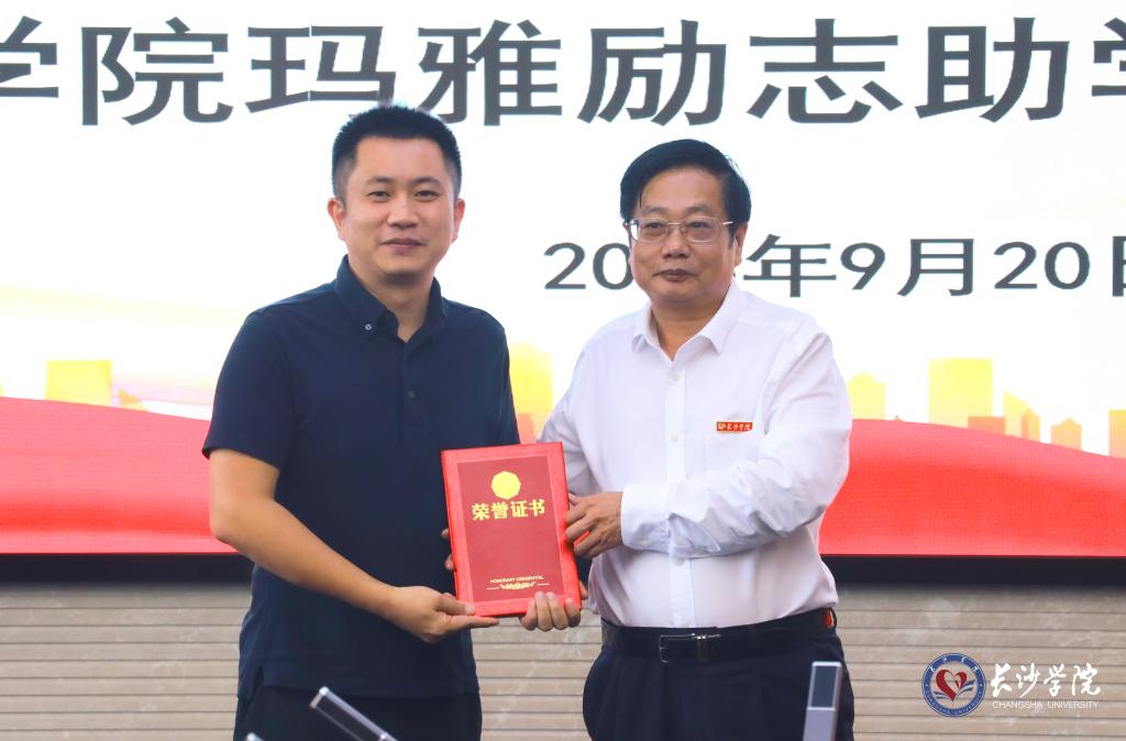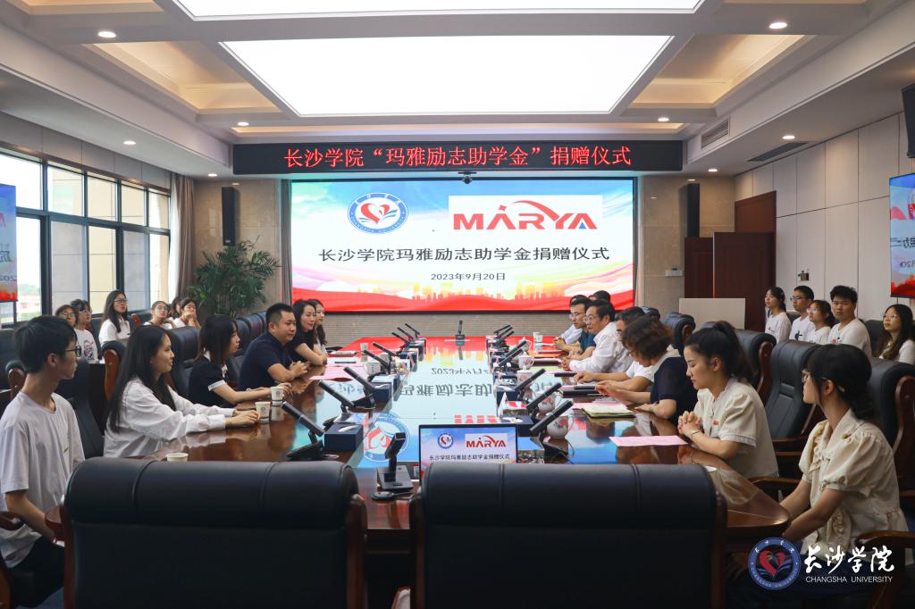 9月20日上午,长沙学院“玛雅励志助学金”捐赠签约仪式在长盛楼4001会议室举行。我校外国语学院2011届毕业生曹文华校友及其家属,副校长陈世平、何利华出席签约仪式,招生与就业指导处(校友会)、学生工作处主要负责人及外国语学院师生代表参加相关活动。仪式由外国语学院党总支书记刘秋菊主持。