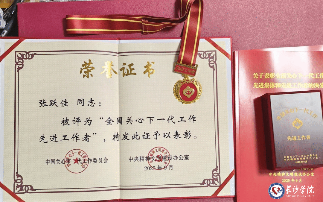 长沙学院校友会督导张跃佳同志获评“全国关心下一代工作先进工作者”