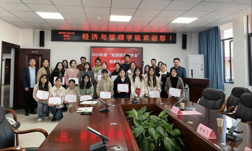 11月17日下午,2023年度“旭源励志奖学金”颁奖仪式在经管大楼B515举行。我校招生与就业指导处处长黎文普、经济与管理学院党总支书记詹琳、副书记陈龙山、法学院宋玲教授、校友会贾兰老师,2008级优秀校友张旭、爱心企业家长沙百通新材料科技有限公司杨跃飞总经理,以及经管学院部分教师、全体获奖学生共同参与仪式。颁奖仪式由物流管理国家级一流专业建设点负责人杨芳教授主持。
